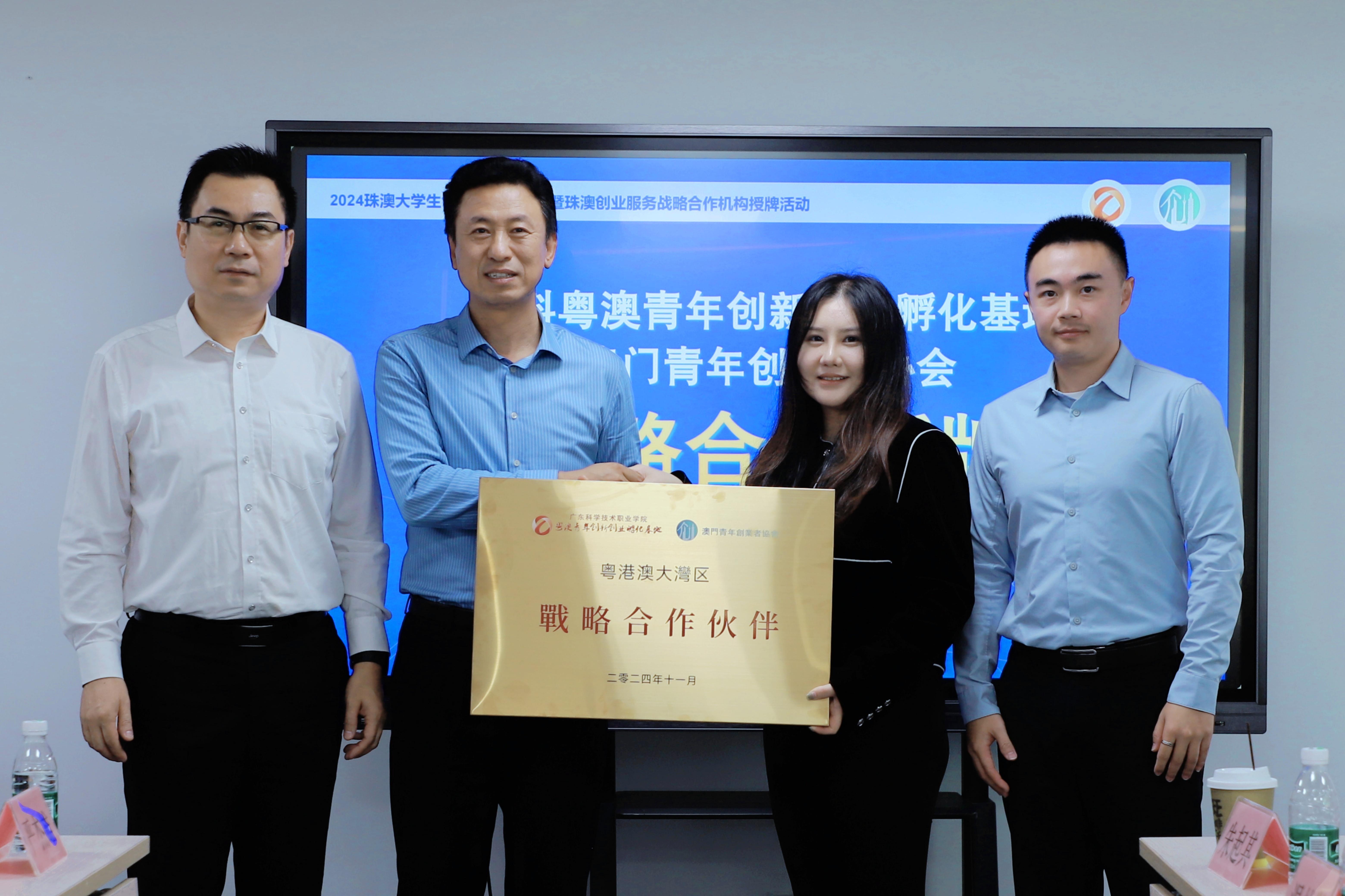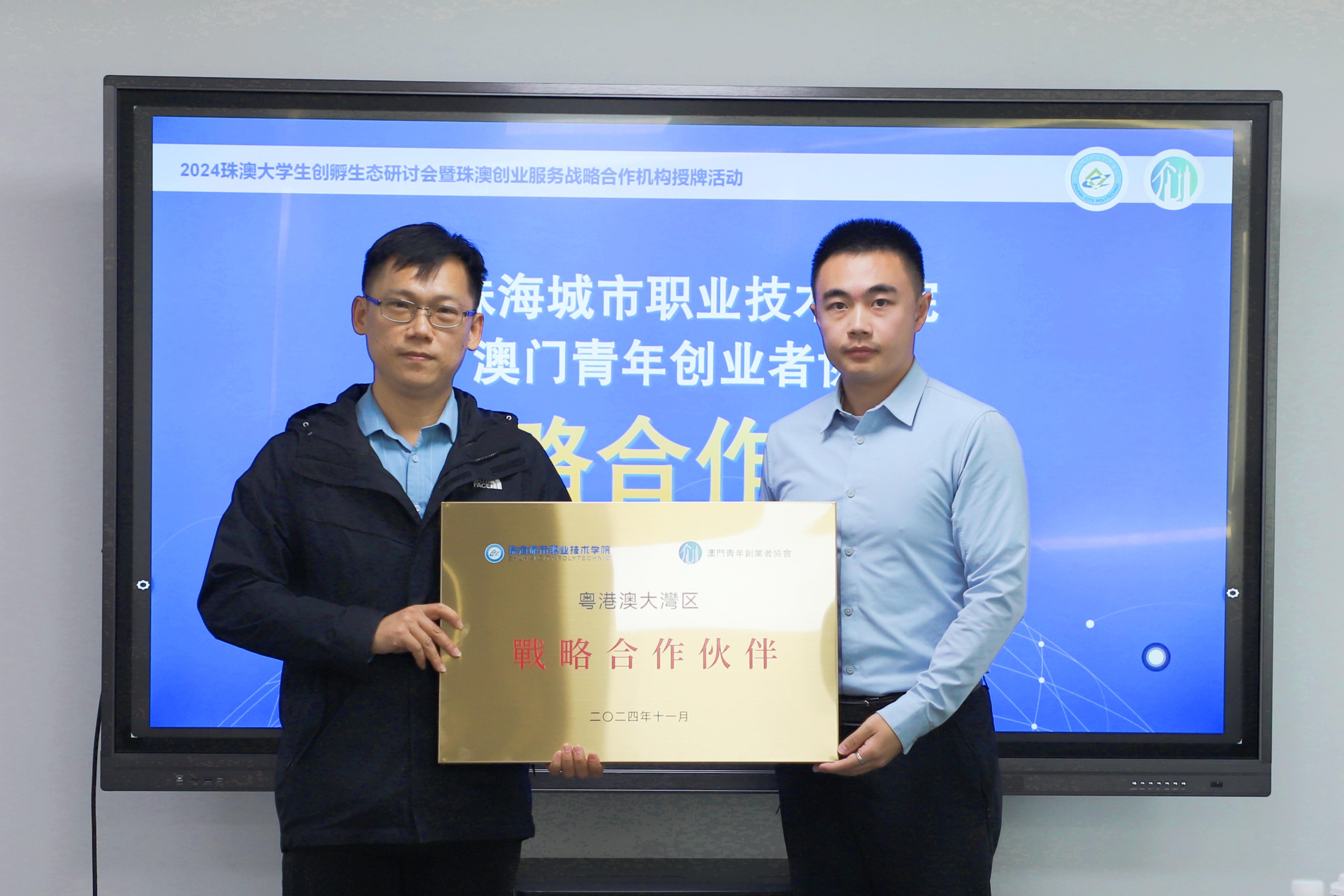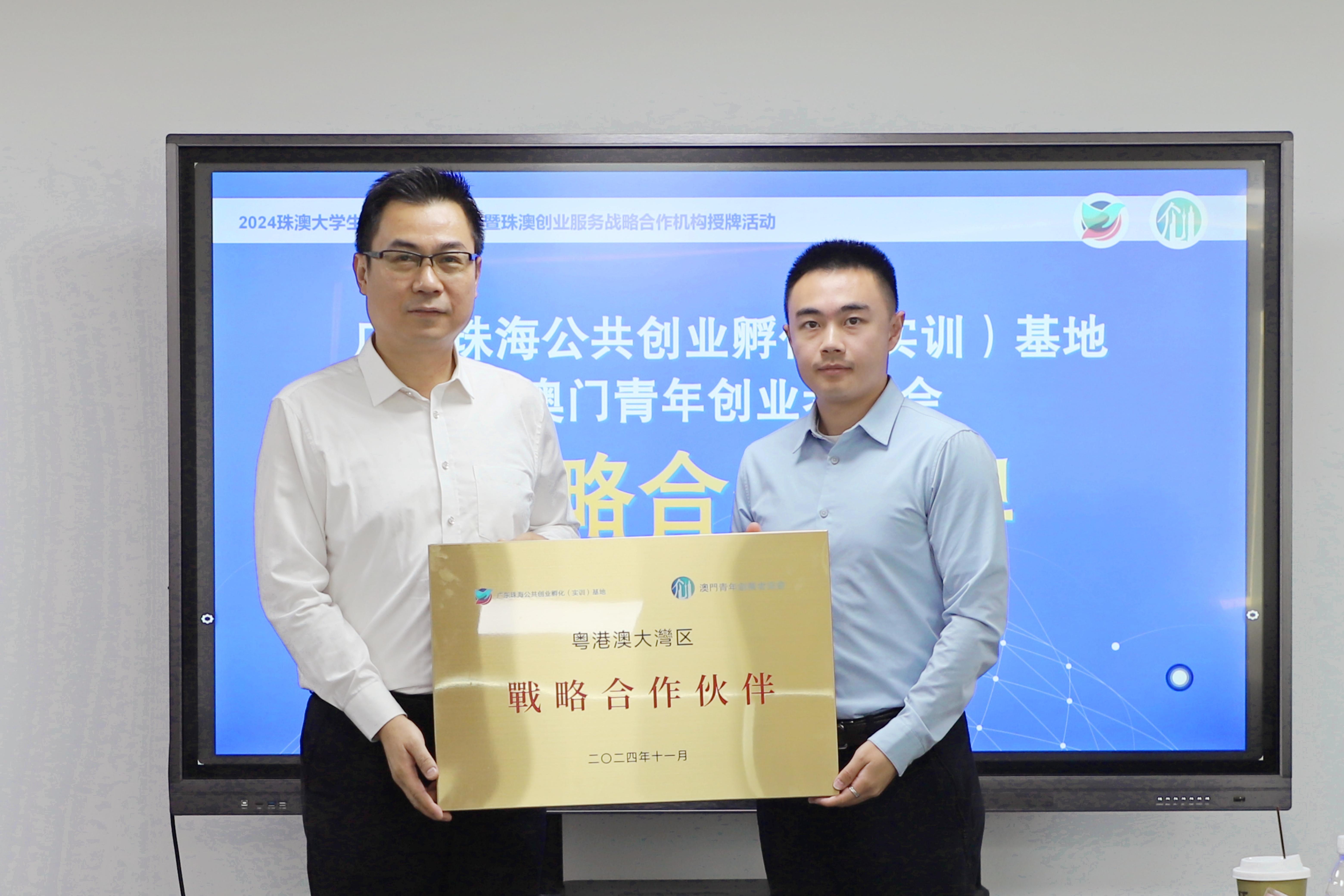 期间,举行珠澳创业服务机构战略合作授牌仪式,广东珠海公共创业孵化(实训)基地、广科粤澳青年创新创业孵化基地、珠海城市职业技术学院分别与澳门青年创业者协会进行战略合作授牌,整合珠澳两地创新创业资源,打造更优的创业服务平台,为创业者保驾护航,促进人才与产业协调发展,实现共赢。